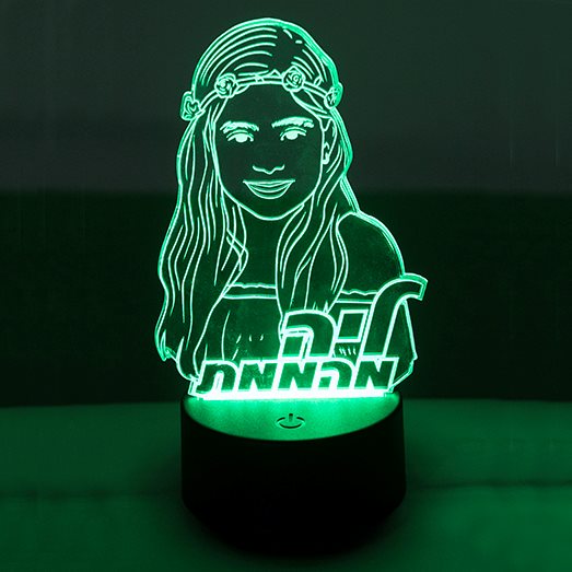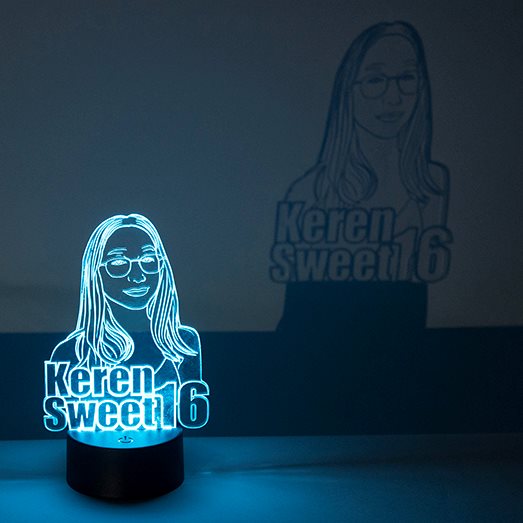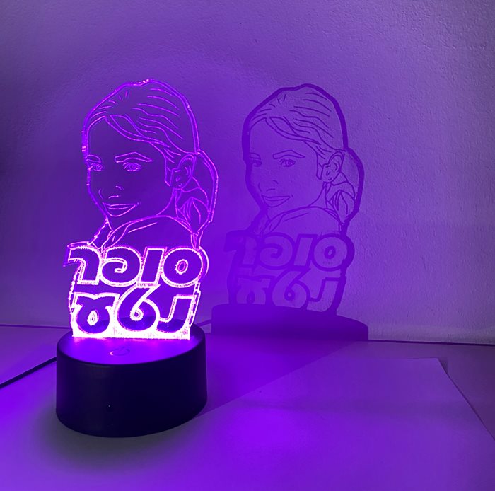 - דמות מאויירת של מקבל/ת המתנה עשויה פרספקס מאירה בצבעים מתחלפים.